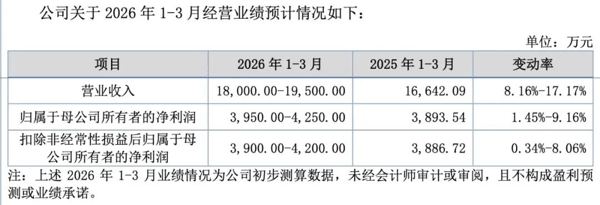 锐翔智能 招股书称,预计公司2026年一季度实现归属于母公司所有者的净利润3950万元至4250万元,同比增长1.45%至9.16%。