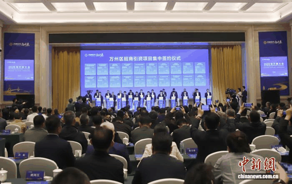 中新网 重庆4月29日电 (马佳欣)28日,2026年万商大会在重庆市万州区举行,现场集中签约项目64个,总投资270.75亿元,涵盖先进材料、新能源、现代物流等领域,为万州产业高质量发展筑牢根基。