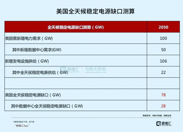 美国能源部2025年7月发布的《资源充足性报告》给我们敲响了警钟。到2030年,美国需要新增100GW的峰值电力供应,其中50GW将直接用于数据中心。 但问题是,数据中心18个月就能建成,而新增发电设施接入电网需要至少5年。更致命的是,到2030年美国已宣布关闭的104GW电厂将由210GW新增发电设施替代,但其中仅有22GW是全天候可用的稳定、可靠、可调度电源。 这意味着,到2030年,美国全天候稳定电源缺口将达到78GW,其中仅数据中心就占了28GW。这个缺口,光伏和风电根本补不上。因为光伏每天只能发电4-6小时,风电靠天吃饭,再加上储能成本高企,它们只能作为调峰能源,无法承担7×24小时的基荷供电任务。