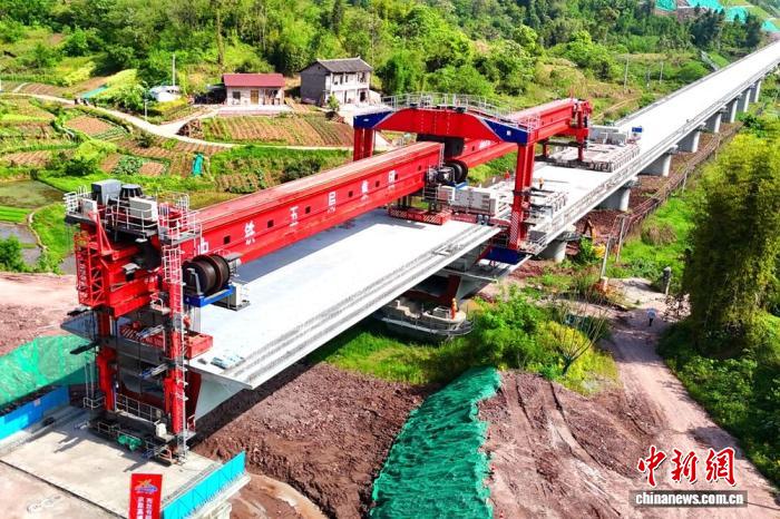 中新网 成都4月17日电 (记者 刘忠俊)4月17日,随着最后一孔长32米、重约700吨的箱梁稳稳落在西安至重庆高铁(以下简称“西渝高铁”)双碉楼特大桥第18孔桥墩上,西渝高铁达州至广安段箱梁架设工作顺利完成,为下一步无砟轨道施工和铺轨作业创造了有利条件。