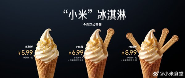 该冰淇淋延续了小米汽车的命名方式,推出标准版、Pro版、Max版三种版本,售价分别为5.99元、6.99元、8.99元。