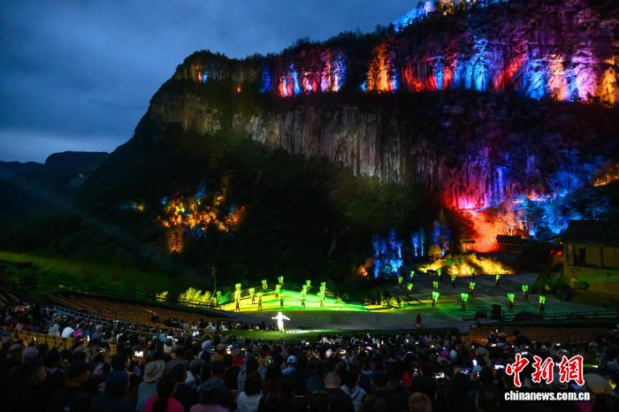 4月16日晚,大型山水实景演出《印象武隆》正在上演。 中新网 记者 何蓬磊 摄