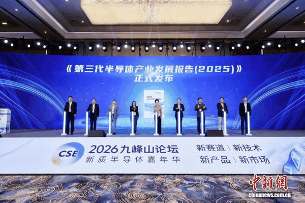 中新网 武汉4月24日电 (记者 张芹)2026九峰山论坛24日在中国光谷科技会展中心启幕。第三代半导体产业技术创新战略联盟理事长吴玲发布《第三代半导体产业发展报告(2025)》。