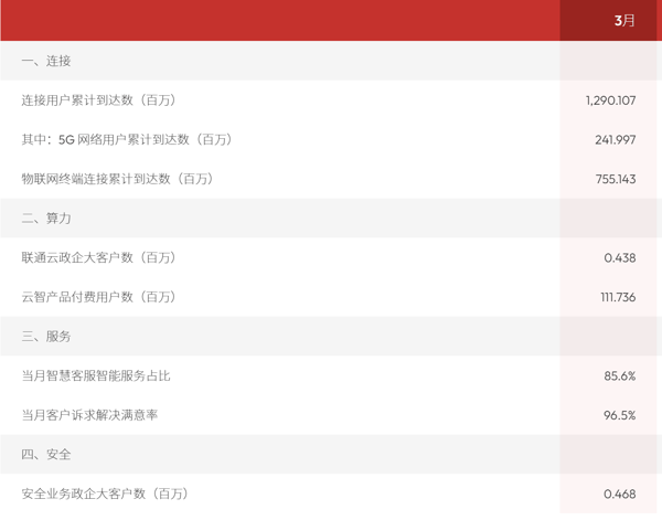 中国联通Q 1运营数据:5 G网络用户2.42亿户联通云政企大客户数43.8万户