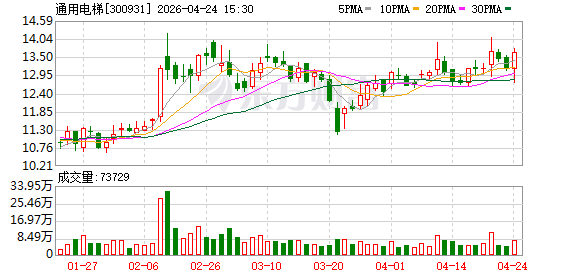 资料显示, 通用电梯 是创业板第一家电梯上市企业,主要从事电梯、自动扶梯、自动人行道的产品研发、设计、制造、销售、安装、改造及维保业务,产品线覆盖乘客电梯、观光电梯、医用电梯、家用电梯、载货电梯、 汽车 电梯、既有建筑加装电梯、自动扶梯、自动人行道等各系列电梯。