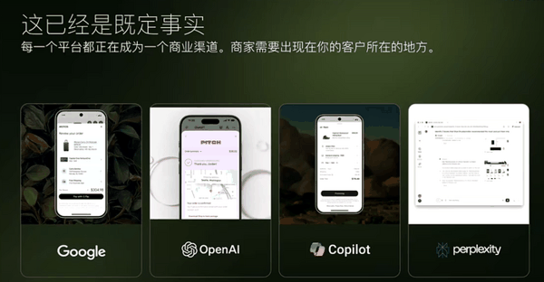为了帮助独立站商家率先抢占AI新流量红利,Shopify已经为商家搭建智能体店面(Agentic Storefront),并已完成与所有主流AI平台的集成,形成了完整的智能体商业闭环。