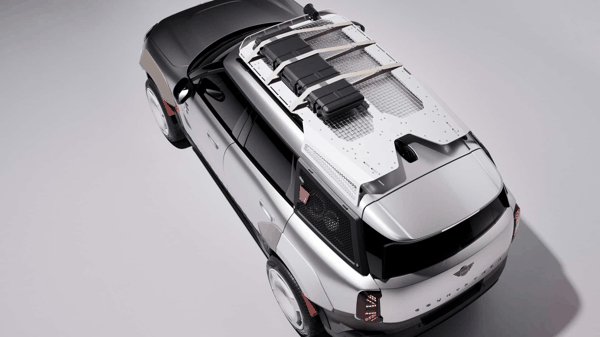 车顶行李架由激光切割铝板与不锈钢网构成,不仅作为设计元素,也具备实际装载功能。