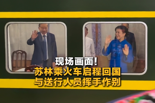 现场画面!苏林乘火车启程回国 与送行人员挥手作别