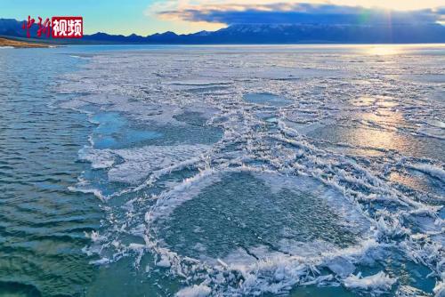 新疆赛里木湖现冰推美景