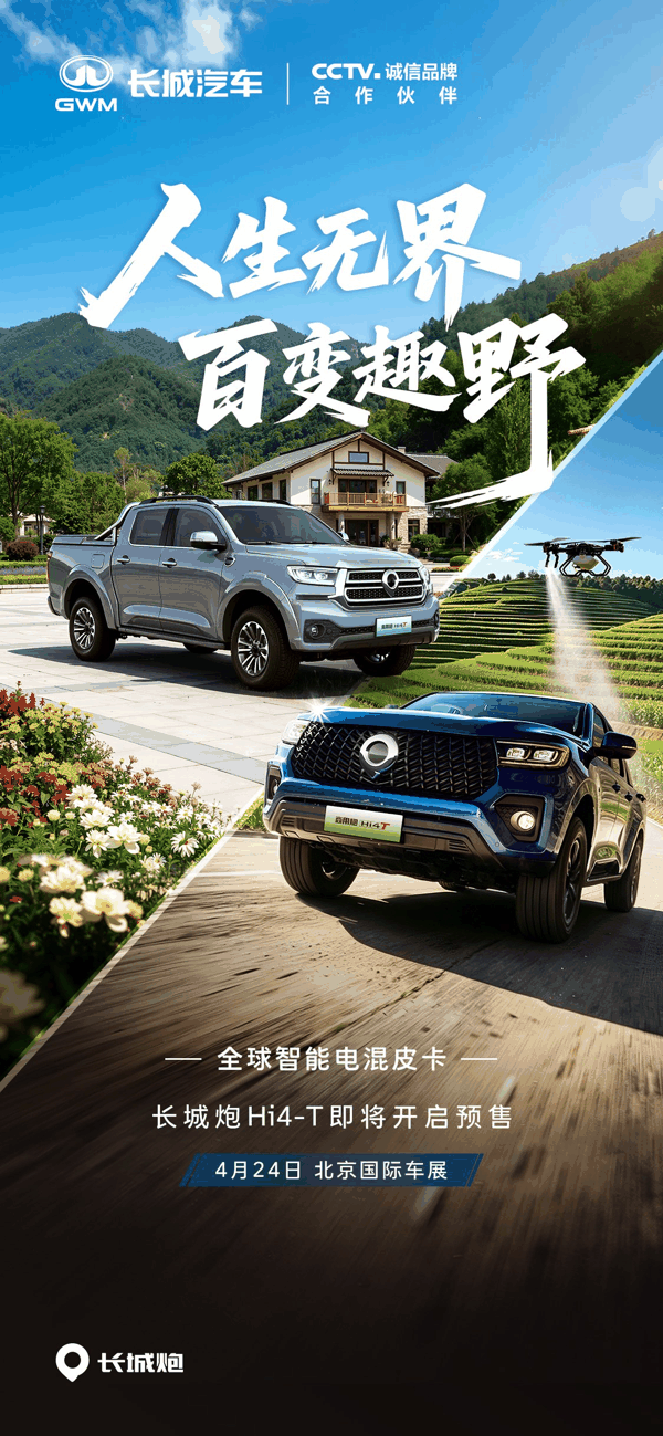 速读:长城炮官方今日发布了长城炮 Hi4-T 外观图,并宣布新车将于 4 月 24 日开幕的北京车展上开启预售。