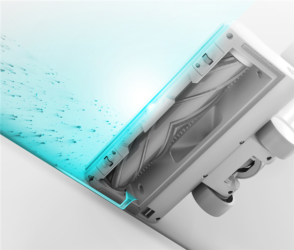 采用双刷防缠毛设计,全地形显尘地刷内置梳齿结构、电动除螨刷采用悬臂防缠结构,减少毛发缠绕。