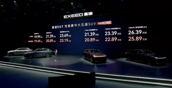 今晚,奇瑞星途品牌的全新车型——星途 EX7 正式上市。星途推出了纯电与增程两种动力共 6 款车型,官方指导价为 19.99 万至 26.39 万元。