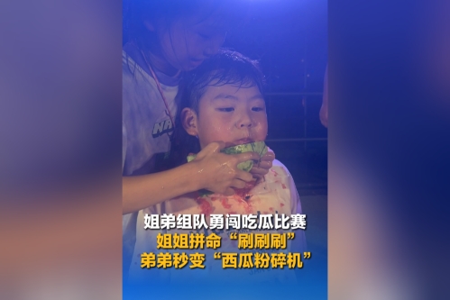 姐弟组队勇闯吃瓜比赛