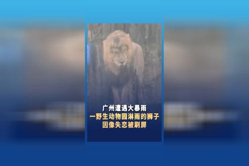广州遭遇大暴雨 一野生动物园淋雨的狮子因像失恋被刷屏