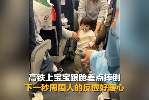 高铁上宝宝踉跄差点摔倒,周围乘客反应暖心