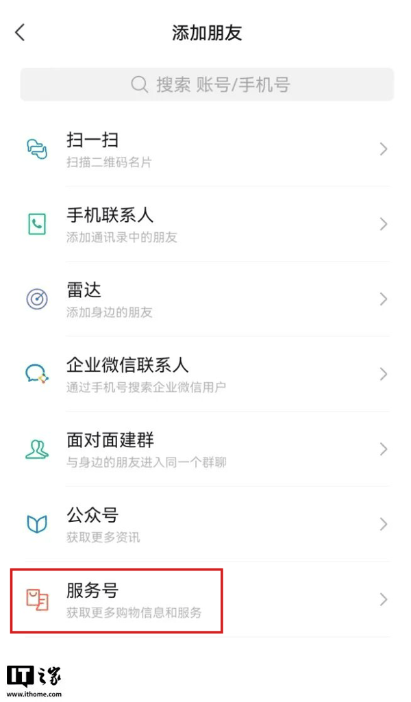 在安卓 8.0.71 测试版中,微信于“添加好友”界面中增加了一个新选项 —— 服务号。