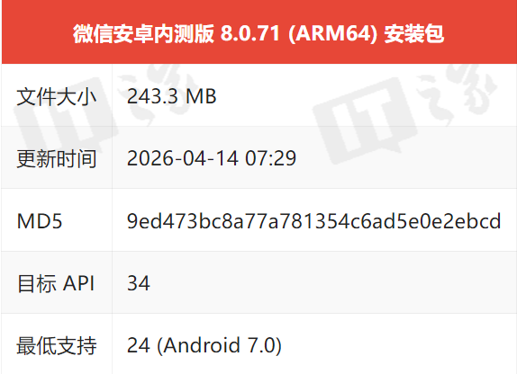 微信 8.0.71 for Android 内测来了!就在今天(4 月 14 日)上午, 微信发布了安卓平台 8.0.71 测试版更新。