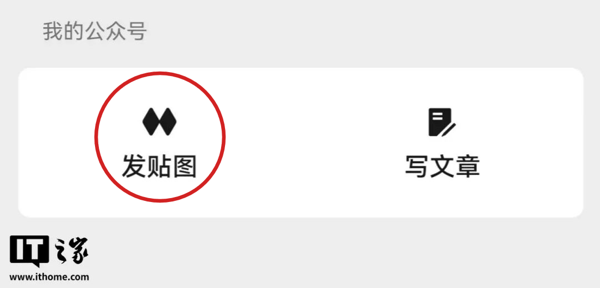 同样是在“公众号 - 个人中心”的界面中,下方“我的公众号”区域内的“发贴图”图标焕新。
