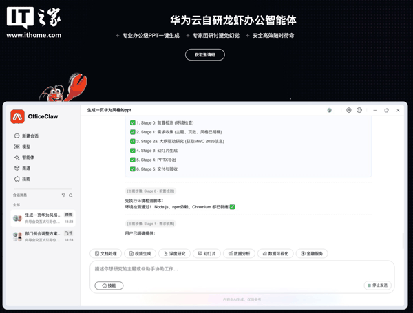 华为云发布自研龙虾办公智能体OfficeClaw:快速生成专业PPT、智能整理本地文件,支持微信一键扫码直连