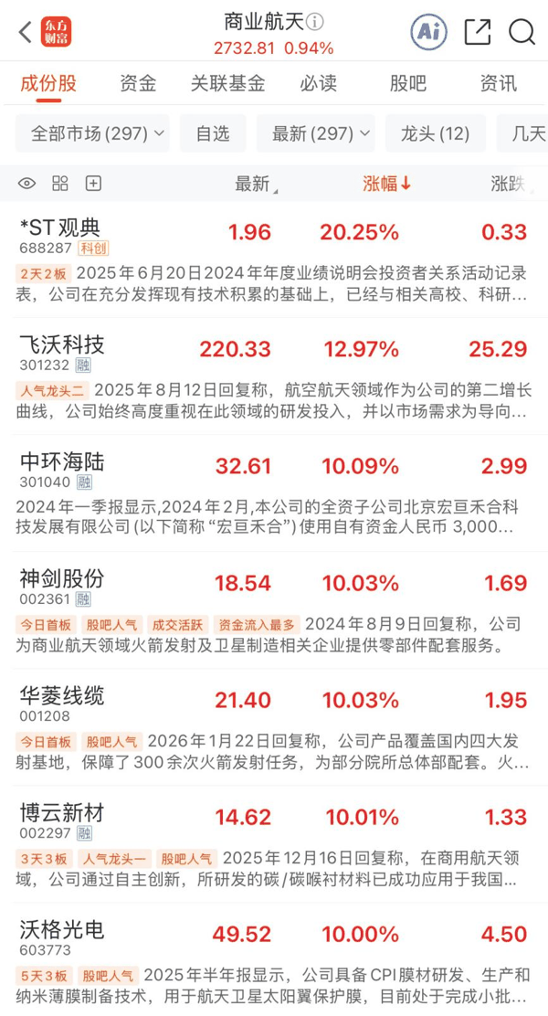 多股涨停!商业航天早间异动行业进入重要窗口期