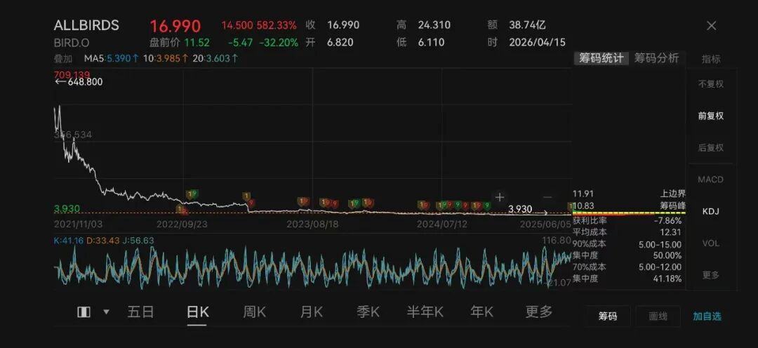 至此,曾经估值40亿美元的网红鞋品牌,几乎归零。而在宣布AI转型的前一日,Allbirds的市值仅约2100万美元。