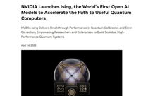 2026-04-15 [英伟达] 量子计算两大难题被攻破!英伟达发布全球首个开源量子AI模型Ising