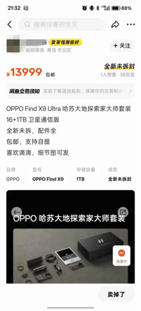 11999元!OPPO Find X 9 Ultra哈苏大地探索家大师套装闪电售罄:黄牛加价卖