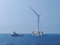 “三峡领航号”是我国自主研发的单机容量最大、技术集成度最高的漂浮式海上风电机组,搭载半潜式浮式基础平台,平台总长约80.85米、型宽91.04米,总重约7530吨。