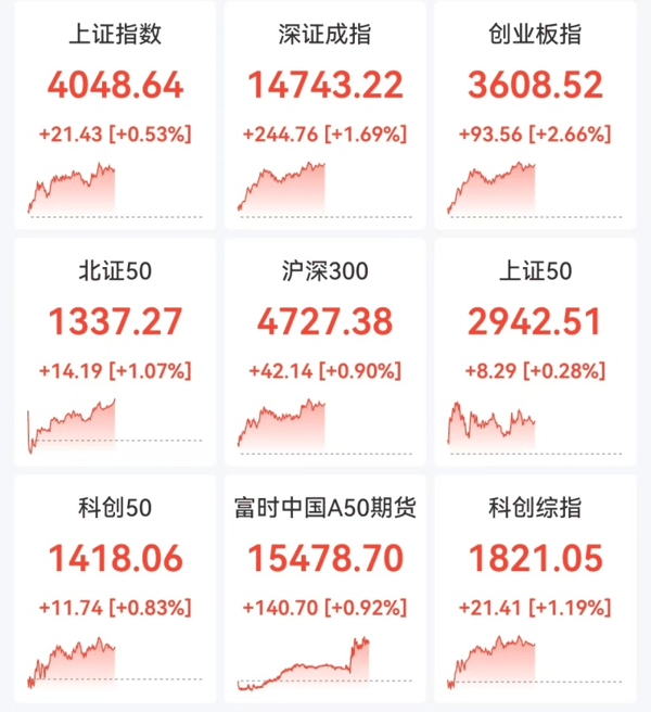 A股指数全线上涨,创业板指涨超2%,宁德时代市值盘中反超中国石油,未盈利企业大普微暴涨430%!