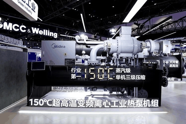 工业能源消费量占全社会约65%,是节能重点领域。美的带来150℃超高温变频离心工业热泵机组,具备高水温、大温升、省钱安心特点,采用高温工况专用R1233ZD冷媒与直驱三级压缩技术,最高出水温度达165℃,耐温180℃以上,安全稳定可靠。美的为厦门某食品工厂部署国内食品行业首套4蒸吨以上全变频超高温蒸汽热泵系统,回收余热供给155℃高温蒸汽,大幅降低碳排放与运行成本。