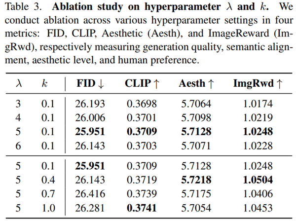 研究团队还做了消融实验,分析两个关键参数的作用。其中,λ 控制收敛方向,k 控制纠正力度。实验发现,λ 过小或过大都会让系统偏离更理想的稳定轨道,而 k 过小会让收敛变慢,语义表现偏弱,k 过大又会引发震荡,让画面显得不自然。