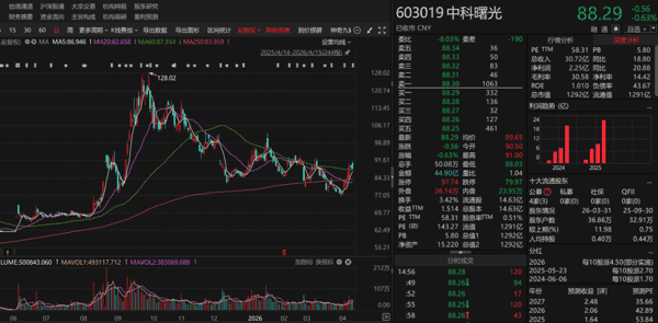 转折发生在2025年12月10日,中科曙光发布公告, 海光信息 终止换股吸收合并中科曙光,公告当天中科曙光股价跌停,此后股价持续震荡调整。