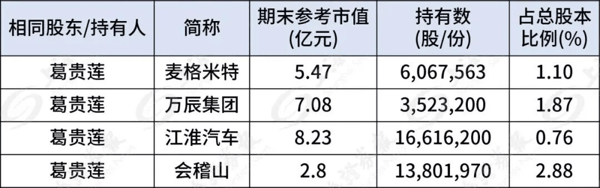 葛卫东的另一个关联人葛贵莲现身4家上市公司: