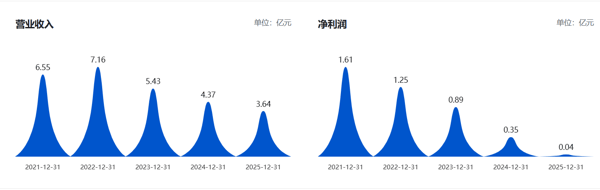 翻阅公司过往年报,公司自2023年起营收连续三年持续下滑,自2022年起净利润连续四年持续下滑,净利润一路从2021年的1.61亿元下跌至仅359万元。