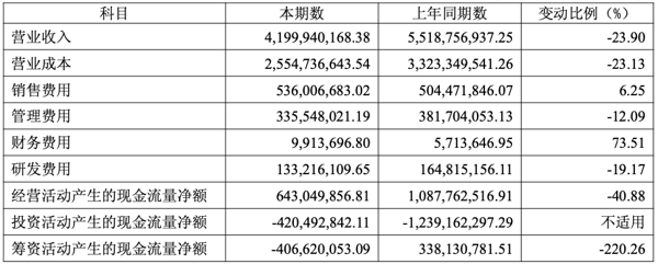 营业成本同比减少主要是调味品板块材料采购单价下降以及销售减少影响;销售费用同比增长主要是人工成本及广告宣传费增加;研发费用同比减少主要是调味品板块研发投入减少。