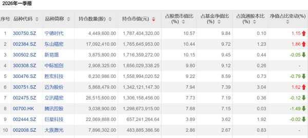 中国公募基金诞生二十多年来,其重仓股的变动情况,堪称中国经济与产业演进的写照。从2019年起,市场掀起一轮核心资产行情,核心消费股和 新能源 板块共同引领。此后AI正式走到了投资舞台的中央。截至2025年底,光模块龙头中际旭创首次“登顶”,成为公募基金的头号重仓股。