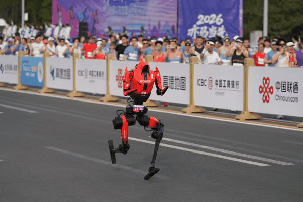 4月19日上午,北京亦庄人形 机器人 半程马拉松赛道终点附近,围观人群的目光紧紧跟随着一道红色的身影。最终,由荣耀“闪电”机器人组成的齐天大圣队斩获赛事冠军。这一成绩也超越了乌干达名将基普利莫在今年3月创造的57分20秒人类纪录。当天,荣耀旗下不同技术方案组成的多支机器人战队包揽了本次比赛的前三名。
