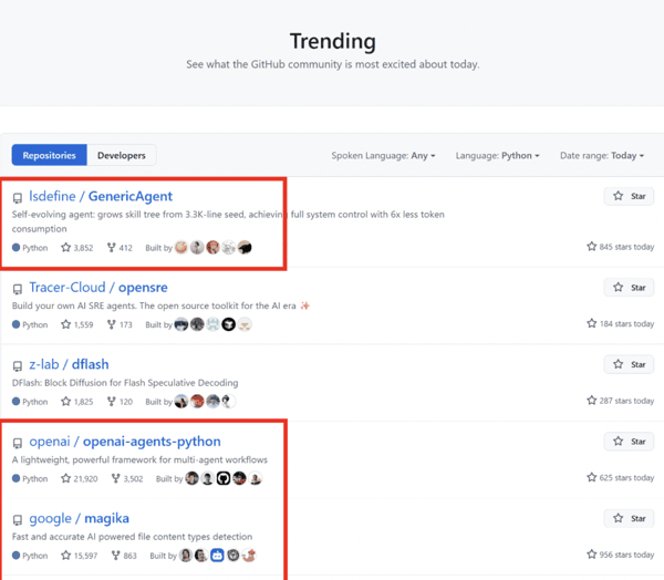 GA 自 2026 年 1 月 11 日开源以来,一度在 github trending python 编程语言登顶第一。力压Op enAI、Google 等头部AI企业的开源系统 。