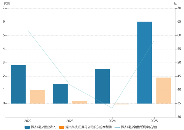 拐点发生在2025年,公司当年实现营业总收入6.01亿元,同比增长138.50%;实现归母净利润1.91亿元,同比大增3212.62%。
