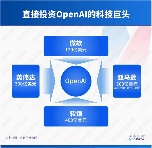 而同样被高度绑定在OpenAI生态系统中的还有:已投入150亿美元前期资金的 亚马逊 、投资300亿美元的 英伟达 、举债400亿美元押注OpenAI的软银。