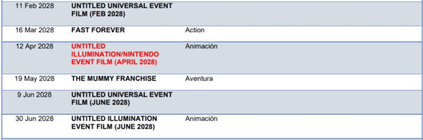 环球影业官网显示,这部“未命名的照明娱乐 / 任天堂合作电影(2028 年 4 月)”项目上映日期为 2028 年 4 月 12 日。VGC 猜测,这既可能是《银河大电影》之后的又一部《超级马里欧》系列电影,也可能是传闻中的《大金刚》《星际火狐》或《密特罗德》等新系列的开端。