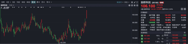 剑桥科技 (HK06166)早盘涨超16%,股价最高报106.1港元,逼近港股上市首日高点109港元。