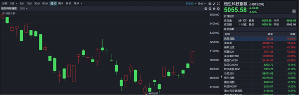 恒生科技指数开盘报5055.58点,下跌36.50点,跌幅0.72%。