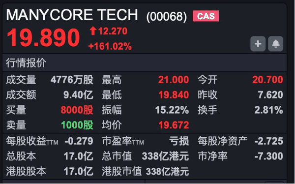 今日市场焦点,“杭州六小龙”之一群核科技(HK00068)在港交所上市。从早盘反应来看,群核科技上市受到市场热捧,高开超171%,股价最高报21港元。截至发稿,股价涨幅略有收窄,仍然涨超161%。