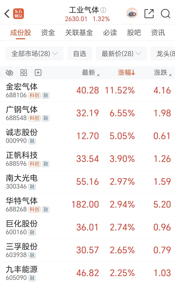 氦气月涨超300%!工业气体前景广阔主力吸筹这些票(表格)