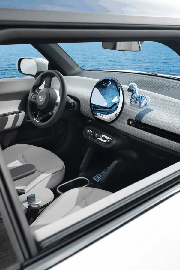 内饰方面,限定版车型在保持现款车型整体设计的基础上,融入蓝色元素与千鸟格图案进行细节装饰,强化专属身份感。科技配置方面,新车配备 9.4 英寸圆形中控屏,搭载 MINI OS 9 操作系统,界面设计更加年轻化,并首次引入数字萌宠交互功能。此外,车辆提供初始、卡丁、节能、放轻松、怀旧、自定义、派对及游牧共 8 种“体验模式”,每种模式均配备专属用户界面。