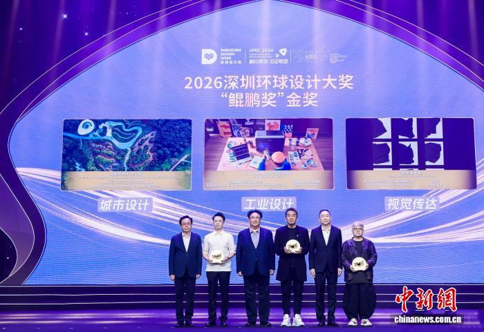 中新网 深圳4月27日电 (记者 索有为)2026深圳设计周启动仪式暨深圳环球设计大奖“鲲鹏奖”颁奖典礼27日在深圳龙岗国际艺术中心举行。本届设计周为期10天,以“设计,让城市更交融”为主题,推动创新链、产业链、价值链深度融合,全力打造科技创新、产业合作、文化交流于一体的国际平台。