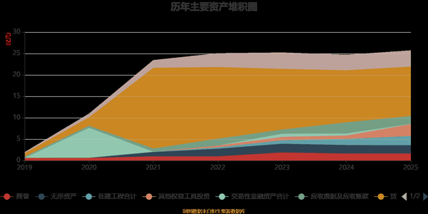 资产重大变化方面,截至2025年末,公司其他权益工具投资较上年末增加247.14%,占公司总资产比重上升7.57个百分点;货币资金较上年末减少5.25%,占公司总资产比重下降4.46个百分点;应收票据及应收账款较上年末减少28.63%,占公司总资产比重下降3.32个百分点;在建工程合计较上年末增加50.36%,占公司总资产比重上升2.58个百分点。