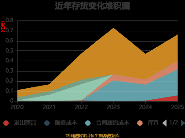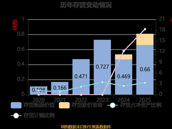 从存货变动来看,截至2025年末,公司存货账面价值为6596.51万元,占净资产的3.29%,较上年末增加1910.48万元。其中,存货跌价准备为1473.38万元,计提比例为18.26%。