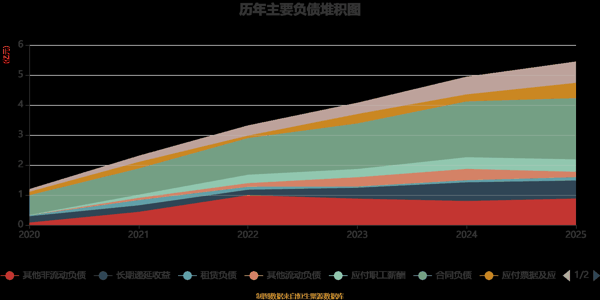 负债重大变化方面,截至2025年末,公司应付票据及应付账款较上年末增加119.49%,占公司总资产比重上升1.04个百分点;其他流动负债较上年末减少52.11%,占公司总资产比重下降0.82个百分点;长期借款较上年末减少100%,占公司总资产比重下降0.63个百分点;合同负债较上年末增加9.59%,占公司总资产比重上升0.39个百分点。
